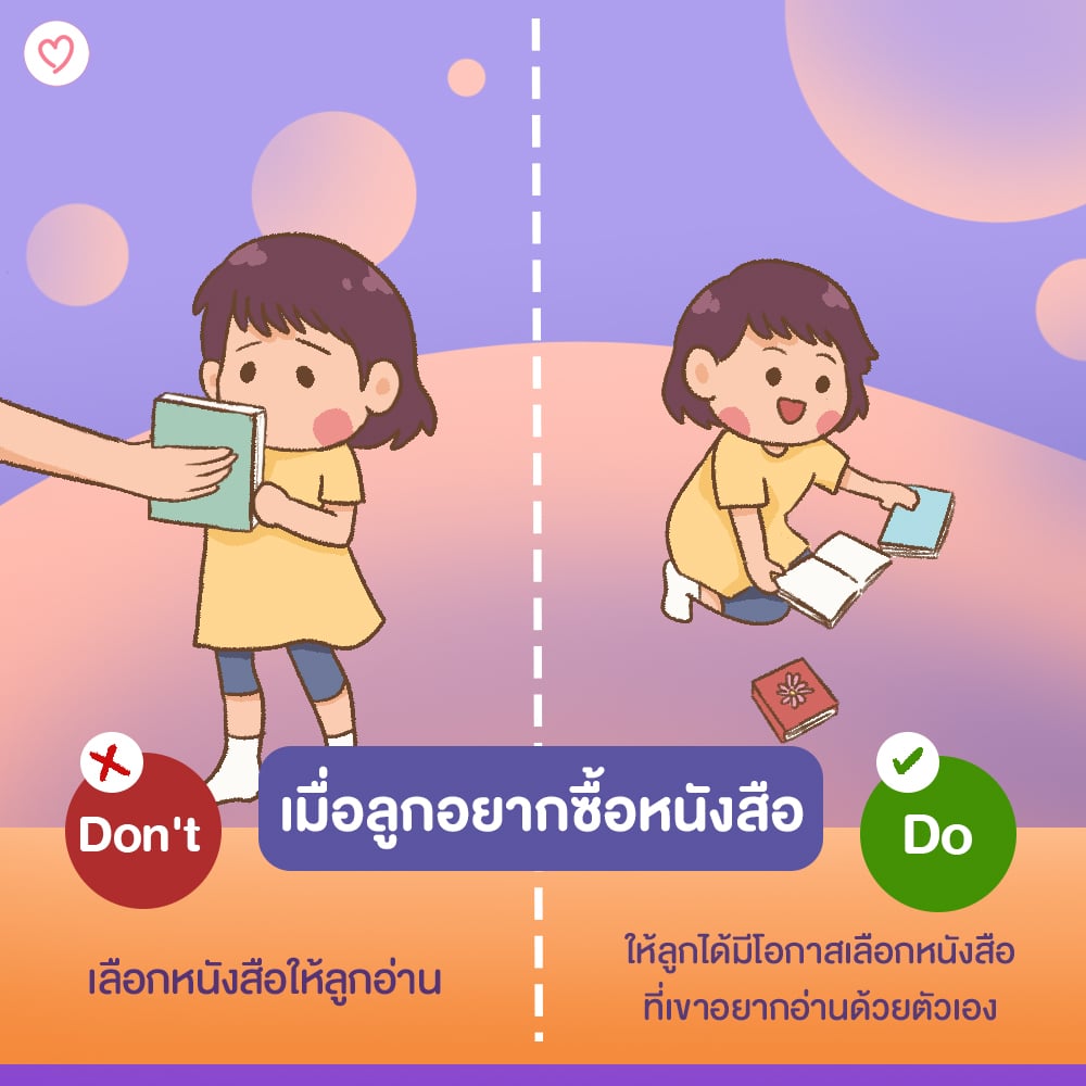 Do : ให้ลูกได้มีโอกาสเลือกหนังสือที่เขาอยากอ่านด้วยตัวเอง