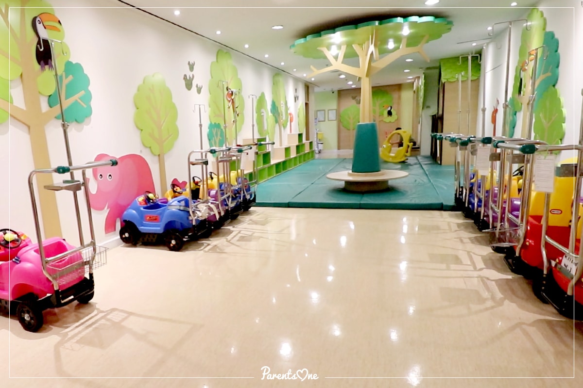 เด็กๆ ที่อยู่โรงพยาบาลคงจะเบื่อกันมากๆ ถ้าต้องอยู่กับคุณหมอและผนังห้องสีขาวๆ ที่นี่เลยมีสิ่งอำนวยความสะดวกเอาใจเด็กๆ ที่อยู่ในโรงพยาบาล โดยมีรถสำหรับแขวนน้ำเกลือ ให้เด็กๆ ที่ยังแขวนน้ำเกลืออยู่ได้สนุกสนานไปกับเจ้ารถหลากสีเหล่านี้ อาจให้คุณพ่อคุณแม่เข็นรถพาไปชมสวนสีเขียวด้านหน้าโรงพยาบาล หรือไปซื้อขนมทานเล่นที่โซนพลาซ่า นอกจากเด็กๆ จะชอบเจ้ารถเข็นนี้แล้ว ผู้ปกครองก็ยังได้รับความสะดวกสบายอีกด้วย