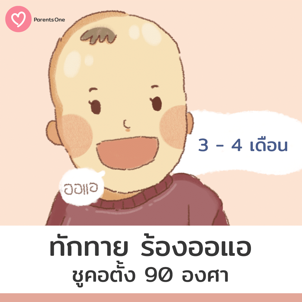 เริ่มจดจำคนที่คุ้นเคยได้ มีการทักทายด้วยเสียงออแอ เมื่อจับนอนคว่ำ จะเอาแขนยันตัวชูคอตั้ง 90 องศาได้