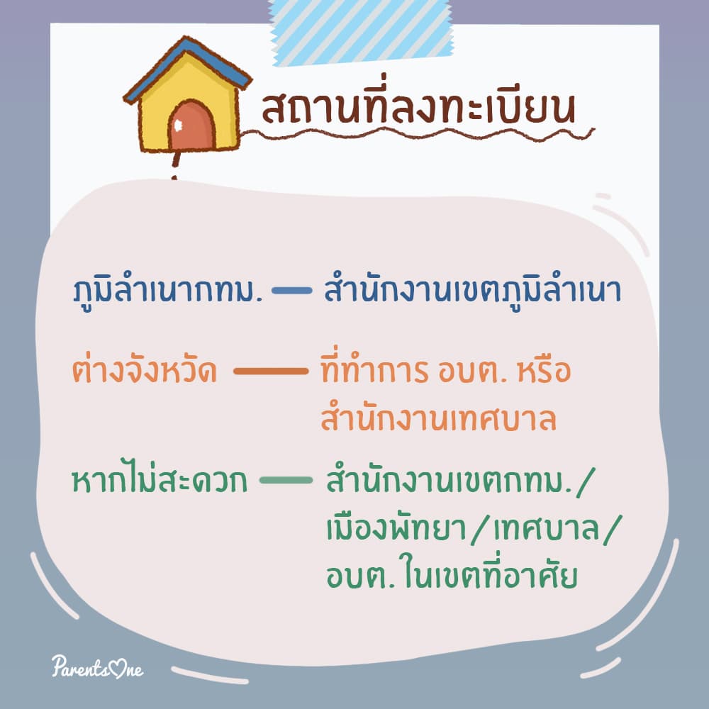 - สำเนาสูติบัตรเด็กแรกเกิด หากลงทะเบียนระหว่างตั้งครรภ์ ให้นำมายื่นหลังจากคลอดแล้ว