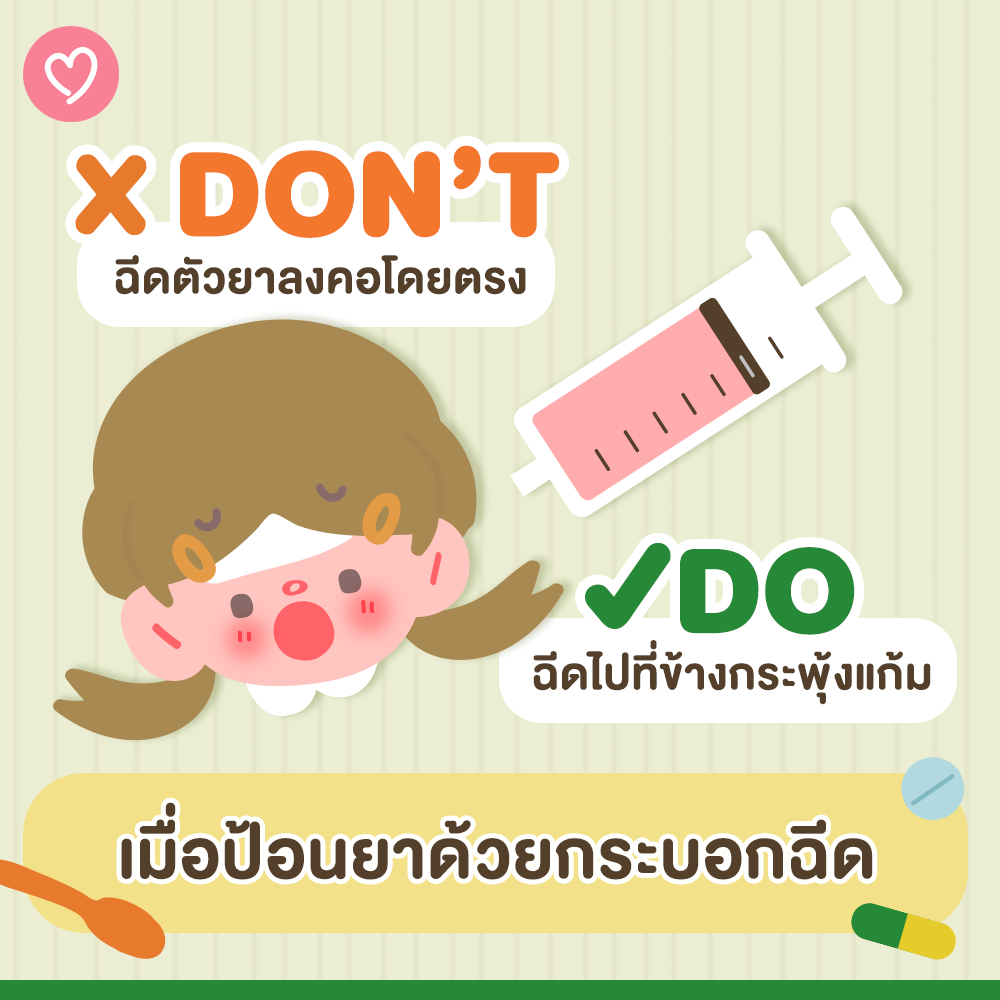 ✗ DON’T ฉีดยาลงคอโดยตรง