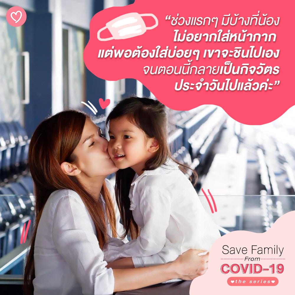 “ช่วงแรกๆ มีบ้างที่น้องไม่อยากใส่หน้ากาก แต่พอต้องใส่บ่อยๆ เขาจะชินไปเอง จนตอนนี้กลายเป็นกิจวัตรประจำวันไปแล้วค่ะ”