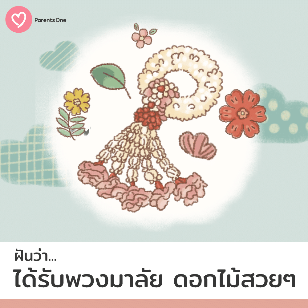 หากหญิงสาวคนไหนฝันว่า ได้รับพวงมาลัย หรือได้รับดอกไม้สวยๆ กำลังจะมีข่าวดีสมปรารถนา หวังมีลูกก็จะได้ลูก หวังจะคลอดธุรกิจใหม่ก็จะทำได้ดังใจคิด