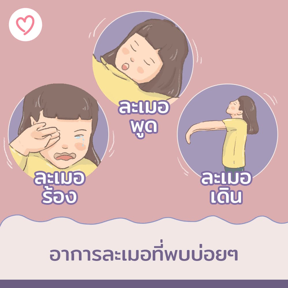 - ละเมอพูด : การละเมอพูด เช่น การทำเสียงพึมพำ พูดเป็นเรื่องเป็นราวบ้าง หรือบางครั้งก็พูดไม่รู้เรื่องบ้าง สักพักก็จะหยุดละเมอไปเช่นเดียวกันค่ะ