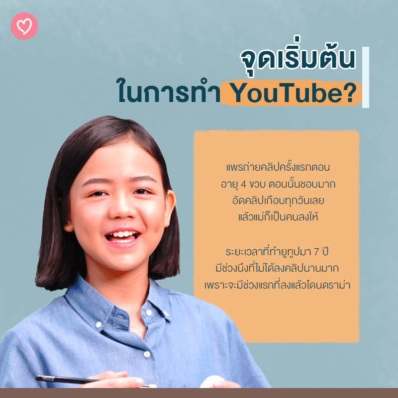 ตอนที่เริ่มต้นทำคลิป คุณแม่เป็นคนลงคลิปให้ พอหนูโตแล้วตัดสินใจจะทำคลิปต่อ