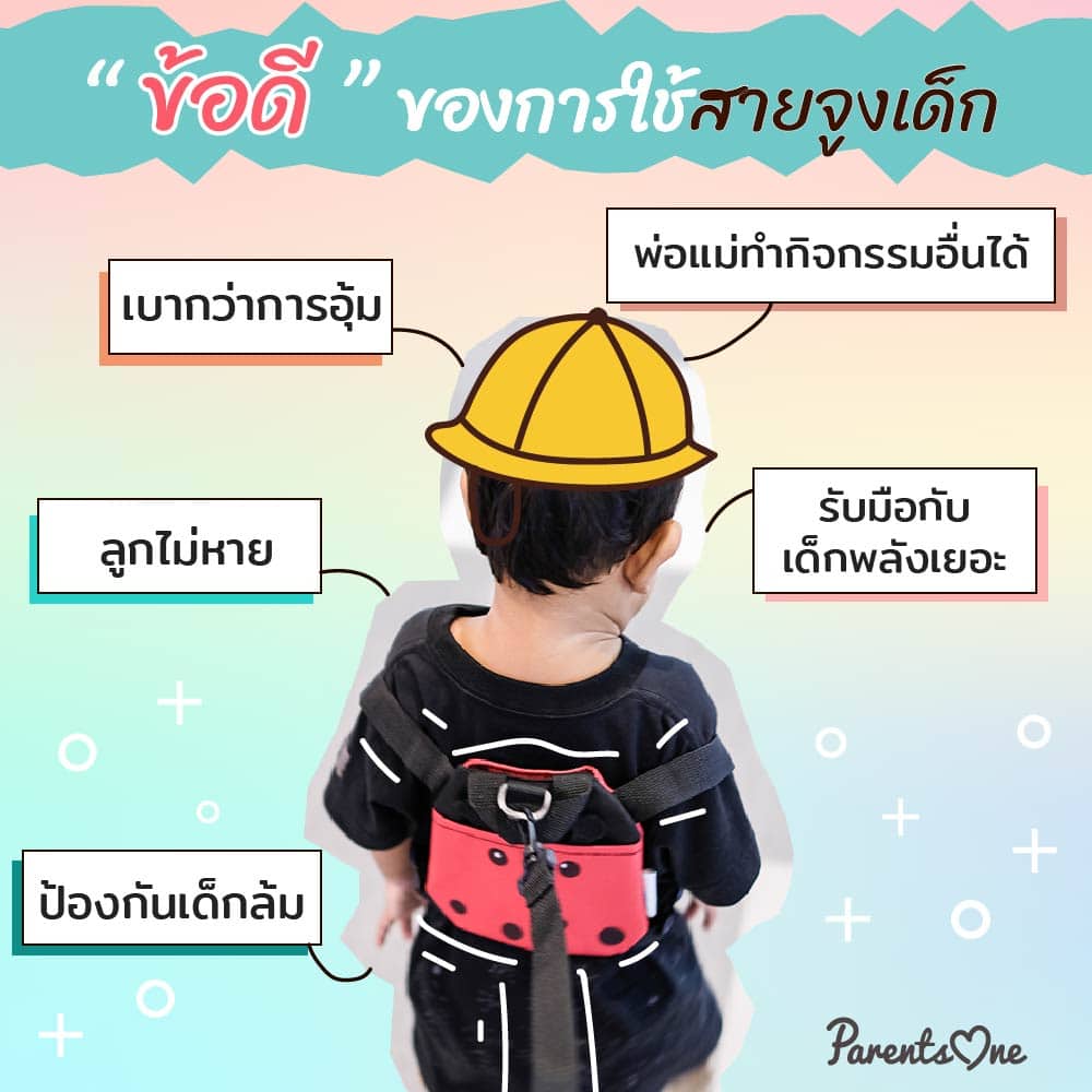 - เด็กๆ เป็นวัยที่กำลังซน มีพลังงานล้น ซึ่งสายจูงเด็กทำให้สามารถคอนโทรลลูกได้ง่ายมากขึ้น