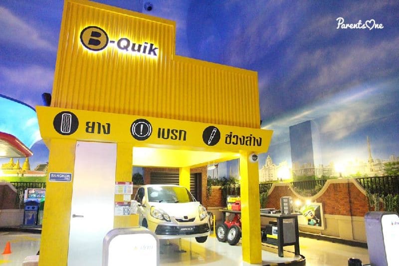 ที่บอกว่าเป็นโซนครบวงจรเรื่องรถ เพราะที่นี่มีทั้งจุดเปลี่ยนยางเเละปั๊มน้ำมัน ที่เด็กๆ จะได้ทำหหน้าที่เป็นพนักงาน ผู้เชี่ยวชาญในการซ่อมบำรุงเครื่องยนต์ รวมถึงสอบขับรถจากส่วนตรงนี้เพื่อเเลก “ใบขับขี่” เเล้วไปขับรถสำหรับเด็กอย่างสนุกสนานในพื้นที่ที่จัดไว้