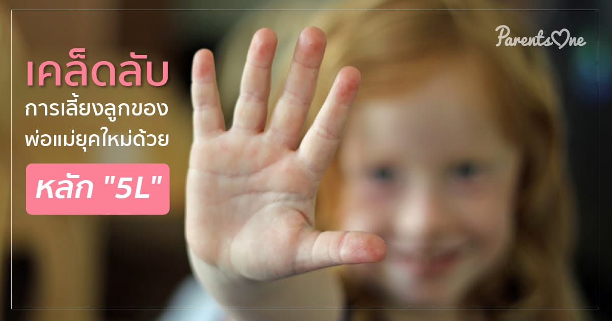 คุณพ่อคุณแม่ยุคใหม่คงมีความกังวลในการเลี้ยงลูกอยู่ไม่น้อย เพราะในสภาพสังคมปัจจุบันมีสิ่งเร้าต่างๆ มากมาย หลายครอบครัวเกิดคำถามว่าควรเลี้ยงลูกอย่างไรถึงจะดีหรือเหมาะสมที่สุด มีการศึกษาค้นคว้า หาเคล็ดลับใหม่ๆ เพื่อนำมาเป็นแนวทางในการเลี้ยงลูก รวมไปถึง “เทคนิคการเลี้ยงลูกตามหลัก 5L” เป็นเทคนิคการเลี้ยงลูกเชิงบวก ที่ทางสำนักงานกองทุนสนับสนุนการสร้างเสริมสุขภาพ (สสส.) ได้แนะนำแนวทางนี้ให้กับคุณพ่อคุณแม่ยุคใหม่ เพื่อเป็นแนวทางในการเลี้ยงลูกโดยได้รับการพิสูจน์ทางวิทยาศาสตร์แล้วว่าได้ผลดีกว่าการเลี้ยงลูกในเชิงลบค่ะ โดยหลักของ 5L มีดังนี้