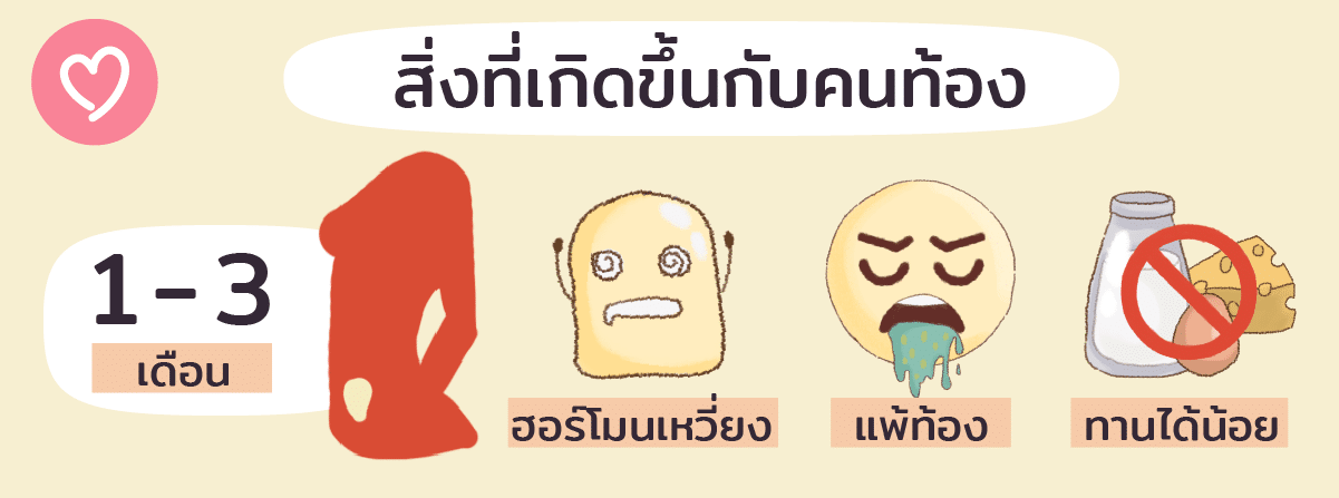 - ร่างกายเกิดการเปลี่ยนแปลง หน้าท้องเริ่มขยายใหญ่ขึ้น มีอาการปวดเมื่อยต่างๆ ตามมา